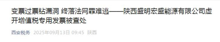 据此,西安市税务局第三稽查局于2024年8月依法对陕西盛明宏盛能源有限公司作出税务处理决定,认定其虚开增值税专用发票,并依据《中华人民共和国刑法》第二百零五条北京炒股配资,将该案移送西安市公安局未央分局。目前,公安部门已捣毁陕西省西安市及山东省东明县犯罪窝点各1处,批准逮捕涉税犯罪嫌疑人3人。