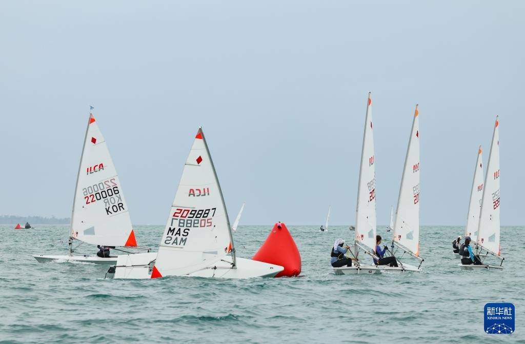 4月24日,第六届亚洲沙滩运动会帆船比赛在海南三亚举行。