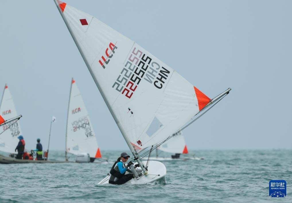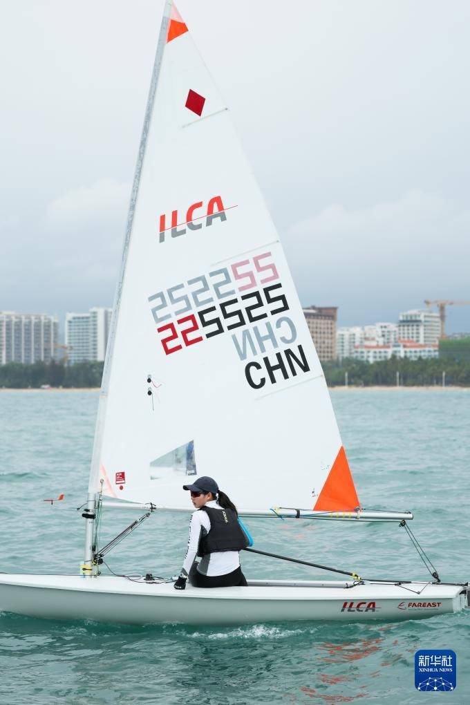 4月24日,中国选手颜果果在女子爱尔卡4级帆船比赛中。